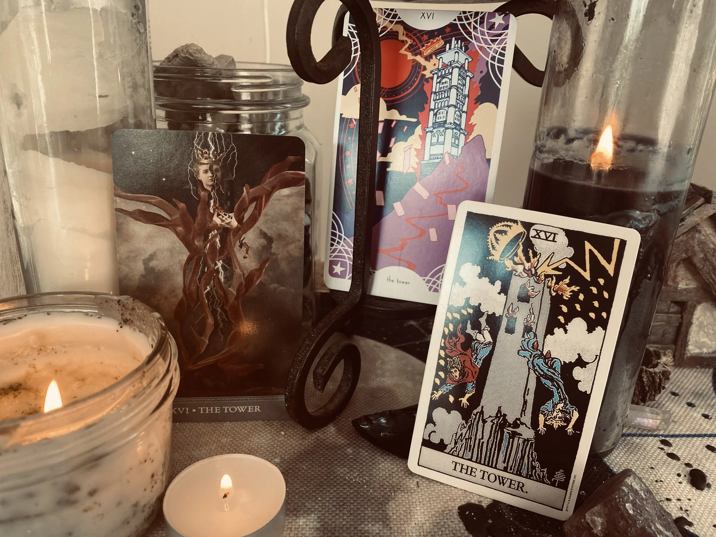 Over in the Land of TikTok, I feature a “Card of the Week” every Monday/Tuesday. It’s a single tarot card to focus on throughout the week as we go through the daily grind and hustle. This is something I do for myself every day, but I pay particular attention to the Card of the Week since it’s something I share with the public… or if it’s a particularly dramatic one. It really couldn’t have been more dramatic than last week’s pull—The Tower. It’s also probably the most fitting one that could’ve popped up.